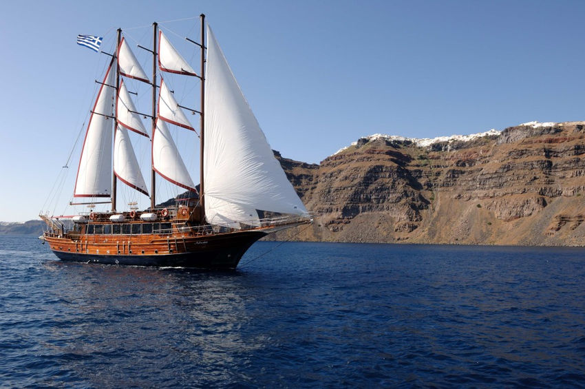 Spend your afternoon discovering Santorini’s volcanic wonders and soaking in its famous sunset on this relaxing small-group cruise. After convenient hotel pick-up, board the Aphrodite, a large, traditional wooden caique, and sail through the breathtaking caldera.